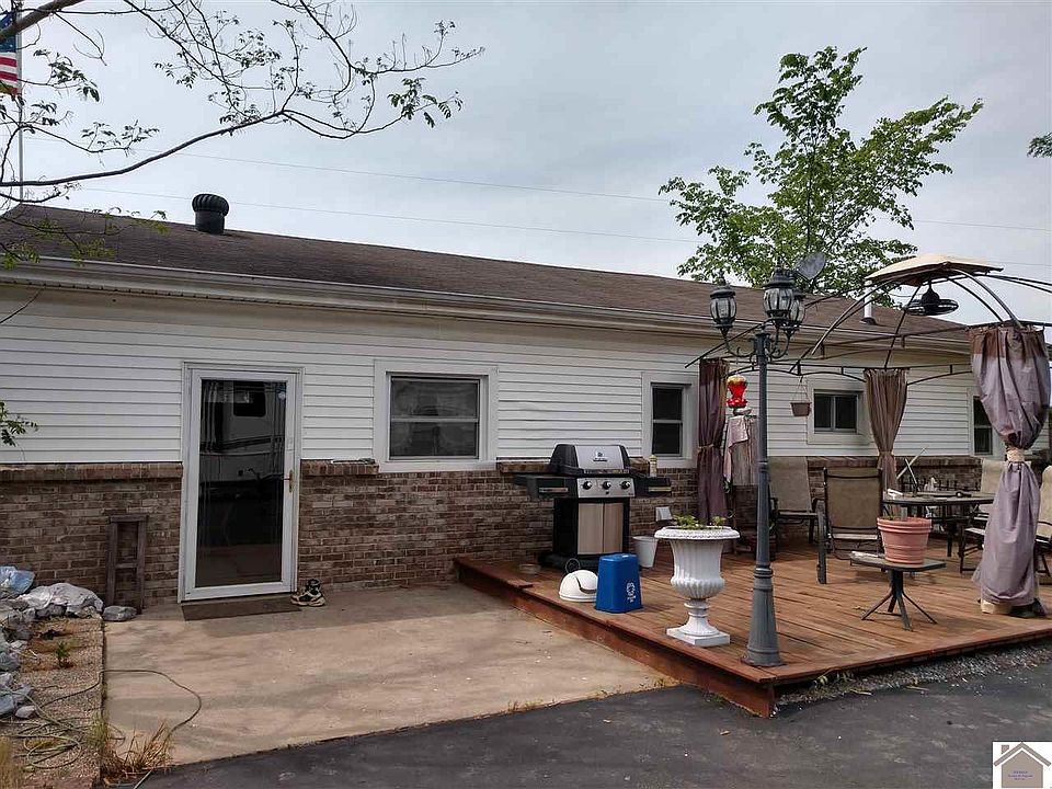 Unique Home. This is a basement home with lots of potential. Newer heating and air, new laminate flooring. Large 2 car garage/workshop with electric and set up for heating and cooling, everything there just not all connect yet. There is also another outbuilding that also has electric run to it. The driveway is blacktopped and has lots of room. Property is being sold in As Is Condition.