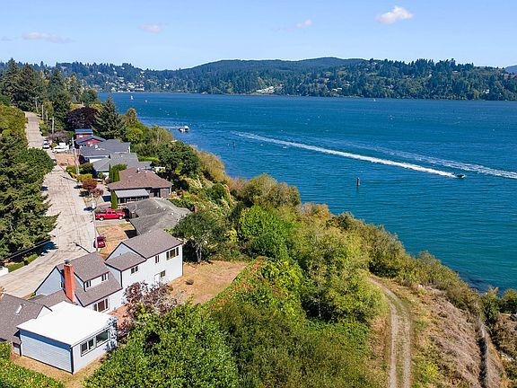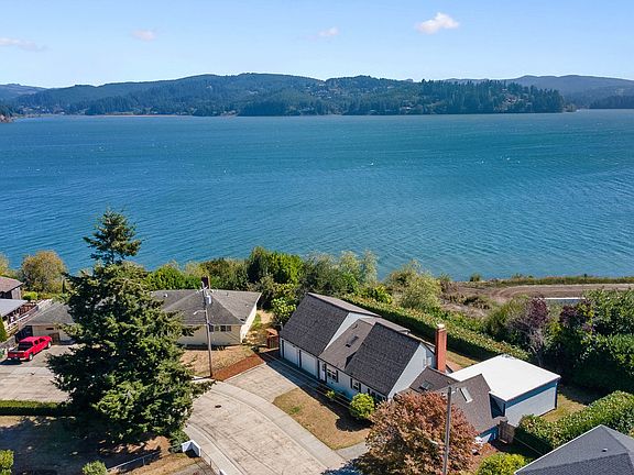EXCLUSIVE SIMPSON HEIGHTS HOME WITH UNRIVALED PANORAMIC BAY VIEWS! Perched atop one of the area's most desirable neighborhoods, this beautifully updated 4-bedroom, 2.5-bath home offers south-facing, unobstructed views that stretch for miles. With 2,855 sq ft of well-designed living space, this home blends comfort, style, and scenery. Step inside to find gorgeous hardwood floors in the main living and dining areas, fresh paint and thoughtful updates throughout. The formal living room features large windows that perfectly frame the stunning bay view, gorgeous built-ins and a cozy wood-burning fireplace for chilly coastal evenings. A second spacious living area offers flexibility with new carpet and a sliding glass door that opens to the expansive deck and backyard, ideal for entertaining or enjoying the view. The updated kitchen offers ample cabinetry, modern appliances and a reverse osmosis water system, all adjacent to the main dining area for easy flow. Also found on the main floor is a bedroom with new carpet and a full bathroom featuring a jetted tub and skylight. Upstairs, the primary suite showcases new engineered hardwood flooring, generous closet space, fresh trim and paint and a soundproof window that captures the breathtaking unobstructed view, along with an en-suite bath complete with a walk-in shower. Two additional upstairs bedrooms have also been updated with new flooring and paint. Enjoy your morning coffee or host gatherings on the expansive back deck while watching the boats sail by on the beautiful bay. Additional improvements include updated electrical and plumbing, newer carpet, fresh interior and exterior paint and in the past six years the roof, siding, trim, gutters and garage doors have all been replaced. Located just outside the hustle and bustle in a well-established neighborhood, this home offers a rare blend of privacy, space and front-row coastal views— schedule your private showing today!