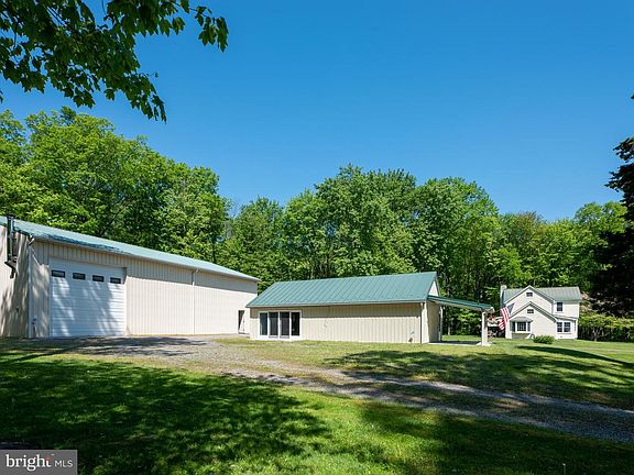 Set on 20 plus acres of bucolic natural landscape this classic Bucks County farmhouse circa 1880 has been meticulously maintained and updated. As you pull up the meandering driveway the green oasis opens up to reveal the view of the home and out buildings. This charming and authentic home offers a completely renovated sun soaked eat in kitchen with a bank of windows overlooking the lush grounds. Step into the spacious living room with stone front fireplace and picture window. The traditional front porch awaits your rocking chairs and a book for relaxing. The upstairs has 3 bedrooms, yellow pine tongue and groove hardwood floors and plenty of closet space There is a detached two car garage with a heated office and double French doors. The expansive pole building has two front oversized bay doors and a rear side entry for pull through access. There is a 220V panel box. Plenty of room for a lift , large equipment, the RV or boat. There is also a full side steel roof over hang. The driveway allows for easy pull around to all buildings for trailers. Gorgeous secluded setting with easy access to both River rd and Easton rd.
