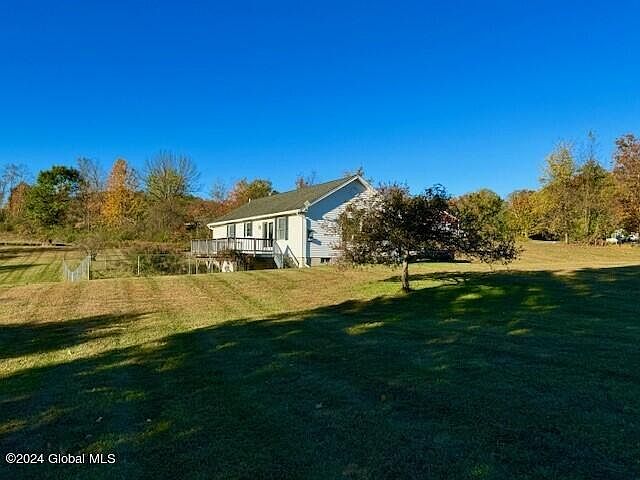 Estate sale custom built one owner 3-bedroom ranch style home on 5 acres with year-round babbling brook! Featuring large living room open to spacious kitchen with siting counter and cathedral wood & beam exposed ceilings along with a beautiful gas fireplace, primary bedroom with extra big walking closet and spacious private bath, laundry room, mud room, small bedroom or office and half bath on main level, finished basement with large family room walk out slider to ground & plumbed for second kitchen, sitting area, 3rd bedroom, full bath and utility room. entry porch and big view Trex deck out slider from living. Attached two car garage, paved drive, big room to run yard with excellent access to snowmobile rec trail and mins to Vermont & Lake George!