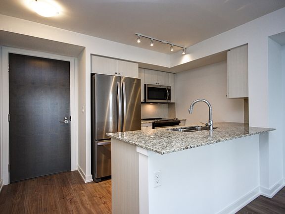 Bright and spacious, this stunning unit features full-size stainless steel appliances, sleek laminate flooring throughout, and two modern baths with stylish finishes. The open-concept living and dining area is filled with natural light and extends to a private walkout balcony offering unobstructed views. The primary bedroom includes built-in closet storage and a luxurious en-suite bath. Located in a prime Scarborough neighborhood, you'll enjoy convenient access to shops, restaurants, grocery stores, and TTC transit, making this the perfect place to call home!Unit includes: stainless steel -fridge, stove, microwave, and dishwasher. Stacked washer/dryer. 1 parking spot, no locker. Hydro/Heat are extra.Building amenities include: outdoor swimming pool, fitness room, visitor parking, and more.