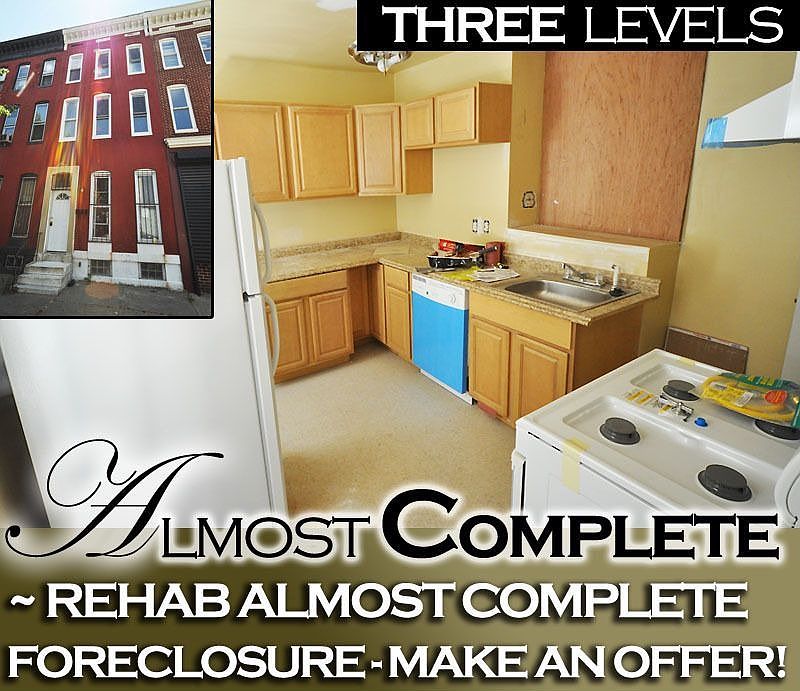 ALMOST COMPLETE 3 LEVEL REHAB, BANK FORECLOSURE - MAKE AN OFFER! Features: 3 bedrooms, 1.5 baths, tall ceilings in living room w/ ceiling fan, large dining room, Kitchen has vinyl flooring, Formica countertops, d/w, gas stove, microwave & refrigerator, fenced patio in rear. AS IS, BANK FORECLOSURE. SELLER WILL MAKE NO REPAIRS. CASH, CONSTRUCTION, 203K & HARD MONEY LOAN ONLY!