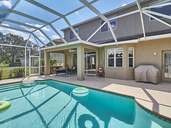 Move-in ready home in Gated Trinity East! Enjoy the Florida lifestyle at it's best!! This stunning POOL home on this serine home site with pond & conservation views is close to perfect! Well maintained, light & bright open floor plan perfect for entertaining with UPGRADES GALORE! You'll notice the pride in ownership the moment you arrive; from the Florida friendly landscape and curbing to the leaded glass front doors. You will fall in love the moment you enter into your soaring foyer opening up to your formal living room which connects to the formal dining room offering trey ceiling and crown moldings, the home continues a beautiful flow into the family room and stunning kitchen which conveniently opens to your covered lanai and screened pool. The kitchen is just beautiful with dark maple cabinets with crown molding, granite countertops, tile backsplash, island, large walk-in pantry & reverse osmosis. The inside laundry room has plenty of cabinetry, storage & a doggie door. Upstairs you'll find 4 well appointed bedrooms. The HUGE Master Suite offers two walk-in closets and grand master bath with soaking tub with a view of the pond below, large walk-in shower, double sinks and make-up vanity. The three guest rooms are large with plenty of storage. Your backyard is AMAZING!!! This home offers a large covered lanai, screened pool, large fenced yard with breathtaking views of a large pond and conservation. Call now for your private tour. Not conveyed: Mst bath & dining chandeliers, window treatments