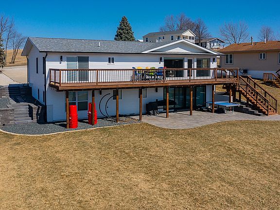Discover the perfect lakeside retreat! This stunning, completely remodeled lake house boasts 82 feet of pristine lake frontage and a private dock, offering breathtaking views and endless water adventures. Whether your boating, fishing, or simply relaxing by the shore, this home is designed for unforgettable family memories. Modern updates throughout, you'll enjoy a seamless blend of comfort and style in a peaceful, picturesque setting. Don't miss this rare opportunity to own your dream lakefront getaway! Fire pit, Private sand beach area, open patio and expansive deck, this home has a very beachy vibe on very flat walk out lot. Walk behind bar is set up like kitchen, you truly won't believe this place, everything has been thought of.