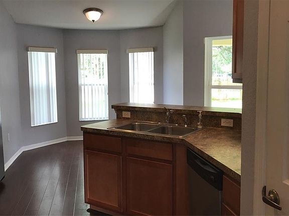BEAUTIFUL 3 bedroom 2 bath 2 car garage home that sits on a large lot with lovely shade trees and the backyard is already fenced! Home features an indoor laundry room, a gorgeous kitchen that is perfect for preparing meals with an eat in area in the kitchen as well as a dining area off of the kitchen. Tall vaulted ceilings adorn this home . Move in ready and conveniently located close to shopping, restaurants, parks, library, and to the Suncoast parkway! Call today to schedule your showing! This home will not last long!