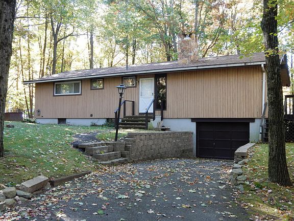 Winter Lakeview! This ranch style home offers 3 bedrooms, 2 baths, large living/dining room combo with cathedral ceiling. There are 2 brick fireplaces. Hardwood floors on first floor. Finished basement makes a great family room or hobby room. 1 car garage with paved driveway. Wonderful deck which is perfect for BBQ's and relaxing. Just one block to beautiful Pocono Summit Lake! Lake is approximately 64 pristine acres! Perfect for canoes, kayaks, paddle boats and electric motor boats. Paved township roads with low taxes. Located just minutes to shopping, restaurants and downtown Mt. Pocono.