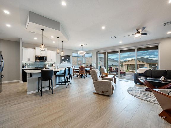 This home was just completed in August of 2021 and is GORGEOUS & MOVE-IN READY! Landscaping-DONE...Fencing...DONE...Window Coverings..DONE, all you got to do is move in! The selections are gorgeous, starting with stamped concrete driveway and walk way into the most gorgeous steel front door. Beautiful designer lighting brings warmth and charm throughout the home that is accompanied with walls of glass to soak up the natural light & eastern mountain views! The kitchen is open and functional with a fantastic walk in pantry and additional counter top, stainless steel appliances that coordinate with the beautiful granite counters, two-tone cabinetry with hardware, and accented backsplash that is subtle yet makes a big statement! Many upgrades have been already done; upgraded wood plank style tile, beautifully wrapped tile guest tub/shower combo, upgraded lighting throughout, a gorgeous electric fire place, an epoxy 3 car garage complete with it's own Air Conditioning unit, extended paver patio and fully fenced pet friendly back yard.This home is AWESOME and it's MOVE IN READY!