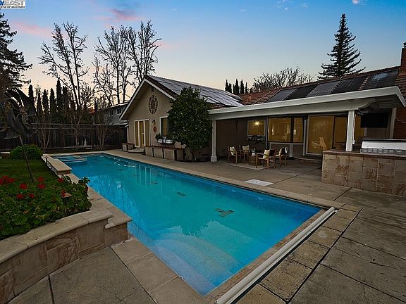 WALK TO MAIN STREET FROM THIS BEAUITUFLLY REMODELED PLEASANTON VALLEY HOME WITH INCREDIBLE OPEN FLOORPLAN. Peaceful Rear Yard Perfect for Entertaining, with newer 60' x 12' pool/spa, large covered patio, outdoor kitchen and built-in gas fireplace and low-maintenance front/back synthetic lawns. Interior features hardwood floors and plantation shutters throughout, custom built-ins and crown moulding, two more gas fireplaces and remodeled granite and stainless kitchen with gas range, Miele dishwasher and wine fridge. Spacious primary suite with upgraded bath featuring double sinks, multi-head walk-in shower, soaking tub and walk-in closet with organizers. Owned Solar system, heated water panels for pool and tankless water heater. Custom driveway, patio & entry hardscape. Just a few blocks to Downtown dining, shopping & entertainment. Convenient location near all 3 levels of top-rated schools, parks, aquatic center and more.