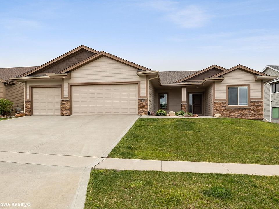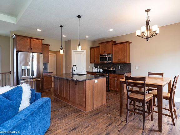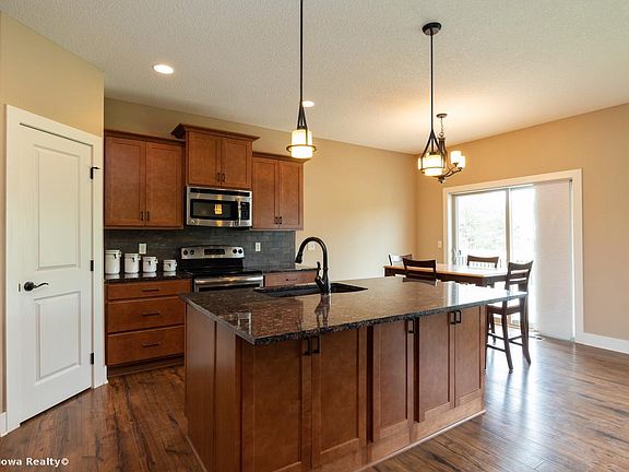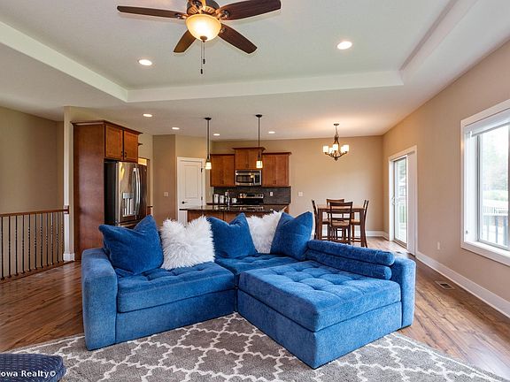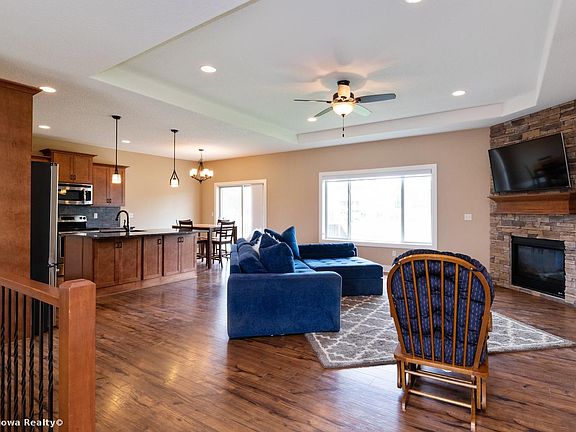 Lots to love about this walk-out ranch home built by KRM in 2015. Walk into a great room fireplace, trey ceiling, and large windows overlooking the extra large back yard (.51 acre lot. The kitchen features maple cabinets, SS appliances, granite counters, and pantry. The DA is adjacent to a sliding door for access to the deck. This home features a split BR plan private MST. BR trey ceiling, mstr BA tile shower, double vanities, granite tops and tile floor; master closet flows into the laundry area and mud room with bench and closet. The two additional BRs & full Bath are on opposite side of the home a pocket door from the great room for a private suite. Enjoy the WO LL with wet bar, FR, 4thBR and 3/4 bath plus storage rooms. Other features inc zero entrance from the gar to the house, one small step at front door, 36" doors throughout, 3 car gar, located on a cul-de-sac, close to schools, and easy access to I80. Full tax abatement until January 2023.