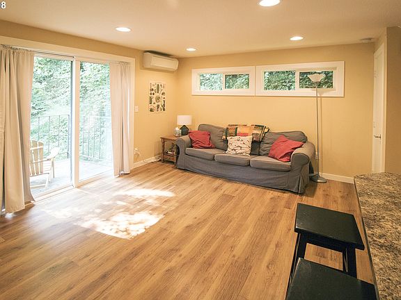 Gorgeous remodeled duplex style townhouse. Great location-Perfect commute to OHSU, PCC, & Lewis & Clark. $35K in upgrades! New Milgard windows, remodeled kitchen w/SS appliances, new hardware,light fixtures, Completely new bathrooms, new trim, paint & recess lighting. New laminate wood flooring on both levels+oak stairs. Energy eff mini split heat/AC in every room-Huge upgrade! No assessments, low HOA & no rental cap. Private decks.