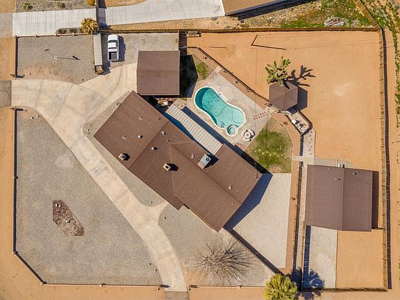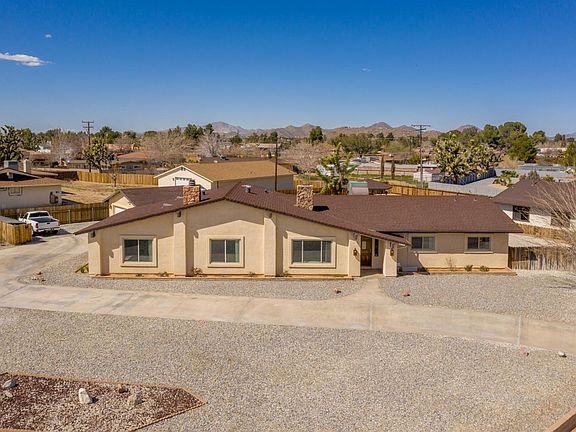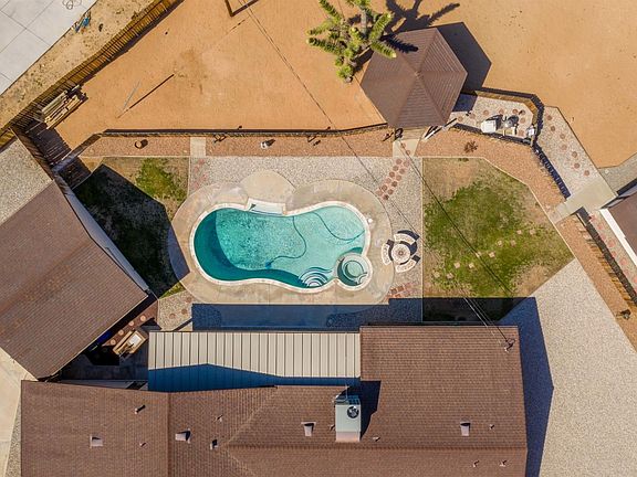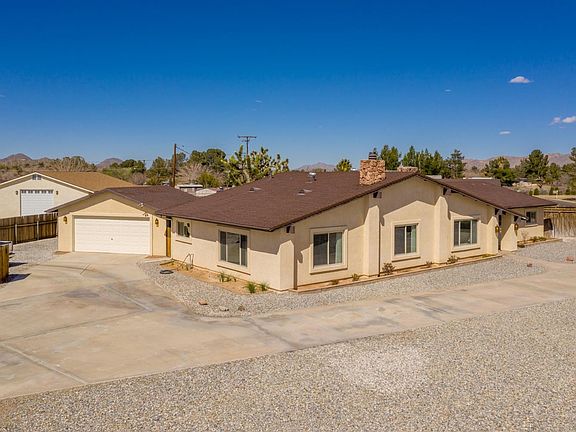 Need garage space? Always wanted a pool & spa in your own back yard? This impeccable home is just what you have been waiting for! Original owners have decided to sell their beautiful 3 bedroom, 2 bath, 2508 sq ft home located on a corner lot in Apple Valley w/circular driveway. Formal living room & family room share a custom double sided rock fireplace. Formal dining room + kitchen nook. Kitchen has butcher block island, corner pantry, double ovens, 4 burner gas cook top w/griddle, breakfast bar & solid surface counter tops. Game room w/corner fireplace, Office, in-door laundry room w/storage cabinets, both guest bedrooms have mirrored closet doors. Guest bathroom w/double sinks & tub/shower combo. Double doors lead you into the Master bedroom w/walk-in closet, linen closet & vanity. Master bathroom has double sinks & sunken roman tile tub/shower combo. 2-car detached garage that is 484 SF built in 1980 w/storage cabinets & work bench + 2nd detached oversized 2-car garage that is 960 SF built in 1991 w/heater & A/C, water heater, full bathroom, own septic, laundry room, walk-in storage closet & work shop area w/sink, counter space & cabinets. Back yard features built in BBQ next to covered patio + gazebo to relax around the in-ground heated pool & spa that was installed in 1990! Roof was done in 2012. Re-color coated stucco was completed in 2011. Home has dual glazed, low E windows. Ceiling fans thru-out. Alarm system. Fully fenced yard. Nicely landscaped w/auto sprinklers.