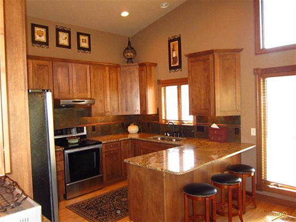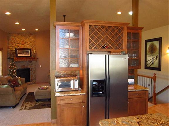 Beautiful home. A real joy to show. Top quality throughout. The 3 inch casing and 4 inch solid oak base really makes everything pop. 6 panel solid oak doors with nutmeg stain. Solid Maple cabinets and maple hardwood floors in the kitchen. Wine rack. 9 foot ceilings plus a vaulted ceiling in the living room. Large pantry off the kitchen with hardwood floors. Half bath and laundry room as you enter from the garage. Ceramic tile floors in the entrance, family room and laundry. Bathrooms have ceramic travertine tile floors and matching ceramic counter tops. Kitchen has granite counter tops with slate back splash and artistic copper design. Master bath has a 10 jet whirlpool tub highlighted by two columns. Family room has a separate game area plus an entertainment center with 5 point surround sound speakers. Gas fireplace down and a gas fireplace in the living room with floor to ceiling river rock.