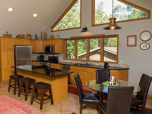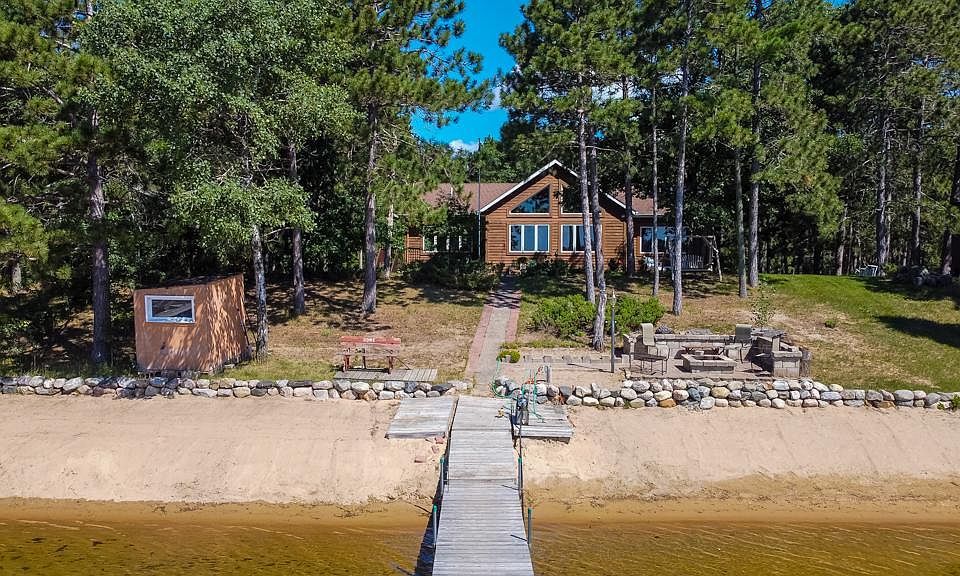 Start making treasured family memories at this 3 bedroom 2 bath cedar sided Horseshoe Lake home situated on 100 feet of sand frontage. Home is located on a private 1.02 acre lot that boasts an excellent sand beach in and out of the water, gradual elevation to the lake and southerly summer sunset views. Well cared for single owner home features stunning lake views, a gorgeous kitchen with stainless steel appliances, 2 sided gas fireplace, lakeside main floor master bedroom suite that has a private access to the lakeside deck, and a full finished basement with an oversized family room with a wet bar. Additional sleeping accommodations for family and friends in the detached bunkhouse. Attached 2 stall garage provides storage. Sit back and relax in the summer sun on the beach with a good book. Gather under the stars around the lakeside fire pit and roast marshmallows. Enjoy boating and fishing adventures on Horseshoe Lake. Located minutes from all the Crosslake amenities.