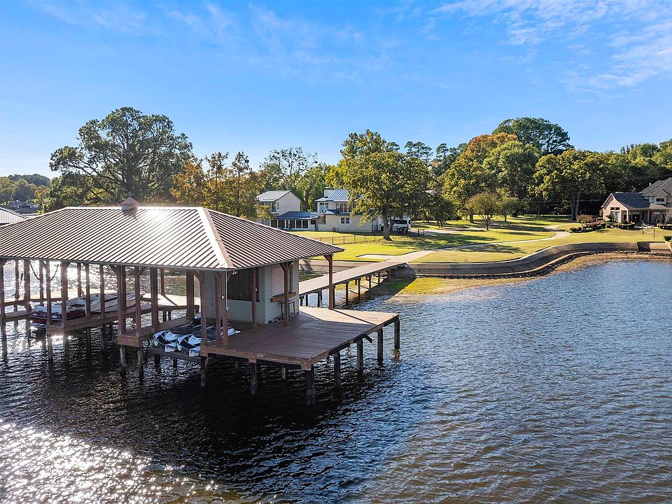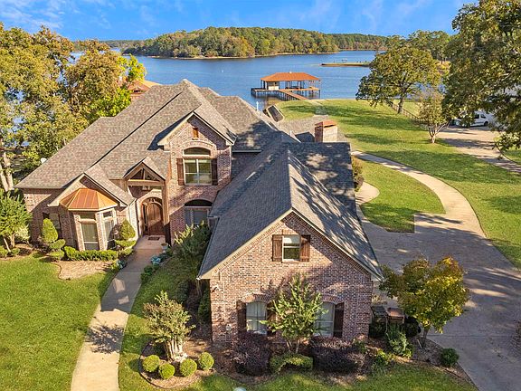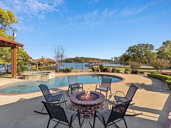 Stunning one acre waterfront property on beautiful Lake Tyler! This 4 bed 3.5 bath home boasts premier open water views of the lake, and is located on one of the most sought-after streets on the lake. The huge outdoor living space is complete with covered outdoor kitchen and spacious entertaining area, a luxurious pool/spa combo, and gas firepit area. Take a walk down the peninsula to find a 4 stall boathouse with sun deck, and enjoy the unobstructed views directly across from Langley Island. Step into the main home which showcases soaring ceilings, 2 living areas, office, and formal dining with large open windows with stunning open water views. The kitchen is a chef's dream with double door Sub Zero fridge, updated appliances, and plenty of bar seating. In the primary suite you will find a luxurious double vanity bathroom with walk in shower and jetted tub along with a large walk-in closet. An oversized 4-car garage rounds out the homes features, and includes a powered lift for storing items in the attic. The home has been updated to be highly energy efficient with all new HVAC system and new windows. There are an abundance of updates and upgrades on this home that make it truly special. If you are lucky enough to live on the lake you are lucky enough! Call today for your private showing.