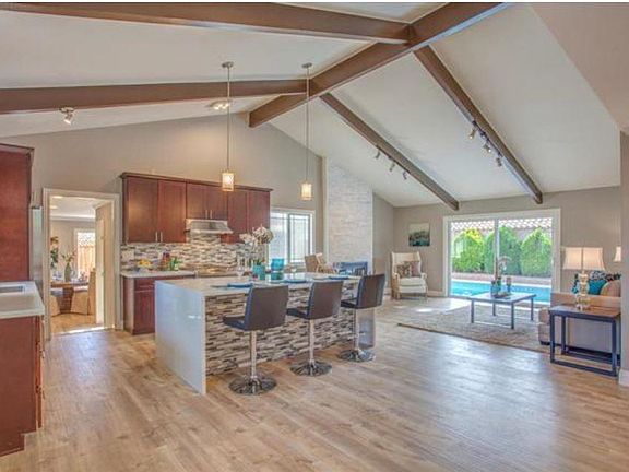 FABULOUS CONTEMPORARY HOME YOU MUST LOVE! Like a new home! 3 bed/2 bath/1 bonus office. 1,730 sqft sits on 10,000+ sqft lot. It has recent permitted 434 sqft addition for office, family & laundry rooms. Newly remodeled with permits inside out. New kitchen with exquisite island, breakfast bar, cabinets & countertops. New stainless steel appliances. New remodeled bedrooms with walk-in closet in master bedroom. New bathrooms with glass sliding door. New laminate/tile flooring. New stunning stacked stone fireplace. New double-pane windows and LED lights. New installed insulation behind drywall. New exterior stucco and paints. New gutters and downspouts. New custom high quality arch cedar double side gate for RV/boat parking space. New 8' fencing with lattice top. Huge and beautiful pool. Top award winning schools in excellent Saratoga neighborhood.
