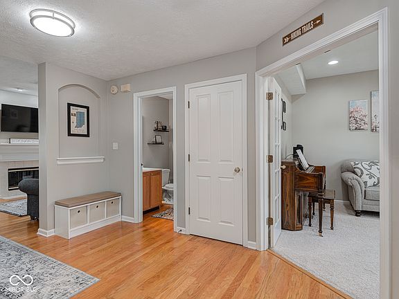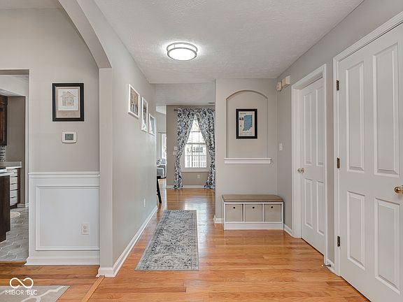 Pristine 4-bedroom home perfectly nestled on a cul-de-sac in The Parks at Springmill! Charming front porch leads to welcoming foyer with coat closet, art niche and hardwood floors. French doors open to a convenient main level home office/den with nearby half bath. Generous formal dining room features an arched entry and custom wainscoting. Dreamy kitchen was fully renovated in 2022 with hex floor tile, custom slow-close cabinets, quartz counters and a Whirlpool appliance package. Every detail was carefully planned including the tile backsplash, under-cabinet lighting and tasteful hardware/fixtures. Breakfast bar overlooks the formal living room and inviting sun room for seamless entertaining. Step outside onto the large concrete patio in your fully fenced and private backyard! Upstairs, you'll find 4 sizeable bedrooms with generous storage and new carpet! Primary retreat features cathedral ceiling, ensuite bathroom with new shower door/glass and walk-in closet! New water heater in Spring of 2023. Active neighborhood with walking trails, 5 ponds, swimming pool, playground, picnic areas, tennis and basketball courts! Easy access to downtown Carmel, US-31 and highly rated schools. This home has everything on your list!
