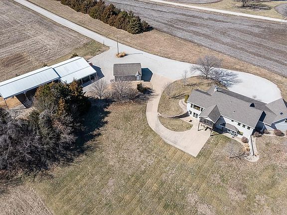 LOCATION, LOCATION, LOCATION—THIS COUNTRY RETREAT HAS IT ALL! Located on hardtop roads, you're 30 minutes from Topeka and KC, 15 from Lawrence, and nestled on 27 stunning acres with woods, a winding creek, native grass, and abundant wildlife. The wraparound porch with Mangaris hardwood decking sets the stage for breathtaking views. Inside, you'll find Custom Wood cabinets in the kitchen and primary bath, white oak hardwood floors, and a chef’s kitchen with a stainless gas stove, GE Advantium microwave, raised dishwasher, and French-door fridge. The vaulted living room has a fireplace, while the oversized family room features a wood stove and panoramic views. The primary suite is spacious with a big closet and laundry off the master closet. An enclosed sunroom offers year-round park-like scenery. Extras? Gated entry, Sonos sound system, custom window treatments, and a well for exterior irrigation—perfect for gardens and landscaping! The walkout basement is a guest’s dream with a living room, full kitchen, 2 bedrooms, bath, storage, utility room, and second laundry room, plus a paved driveway leading to its private entrance. Outside, you'll find two garages, a lean-to shed, and a barn. Secluded yet accessible—this one’s a rare find!