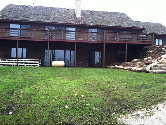 Enjoy the best sunsets on the WFC with perfect sand beach and gradual elevation. This 5 BD/5Bath walkout rambler has two master suites,wood floors,panoramic lake views,garage work shop,paved driveway, fantastic family room w/wet bar and game room.