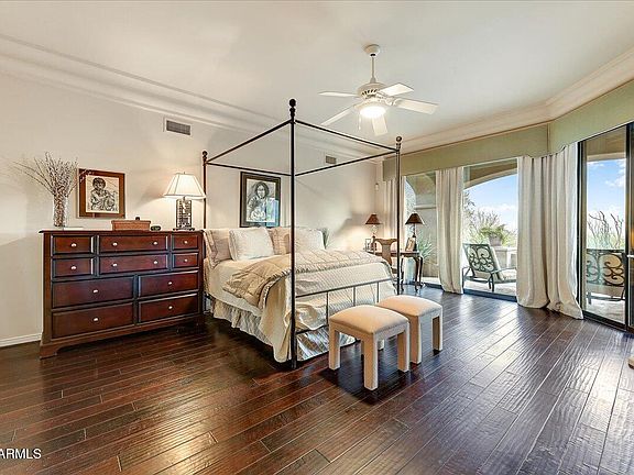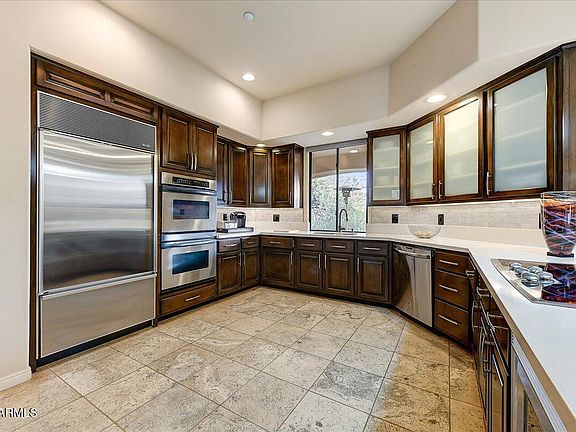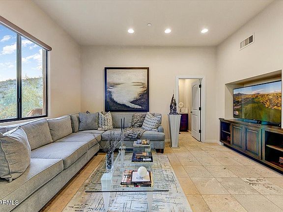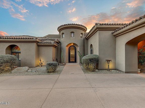 Situated on a nearly half-acre north/south-facing corner lot, this stunning custom home offers captivating mountain and city light views. Featuring 3 bedrooms, 3.5 bathrooms, wood and travertine flooring, this residence is both luxurious and inviting. The chef's kitchen boasts a SubZero fridge, double ovens, and ample cabinet space. The spacious primary suite includes a HUGE walk-in closet and a marble ensuite. Perfect for indoor/outdoor living, the south-facing covered patio, relaxing spool, and water feature make entertaining a breeze. Scottsdale Mountain amenities include 24/7 security, tennis, pickleball, a spa, and outdoor spaces. Conveniently located near restaurants, shopping, entertainment, Mayo Clinic, and top-rated Scottsdale Unified and BASIS schools. Furnishings available!