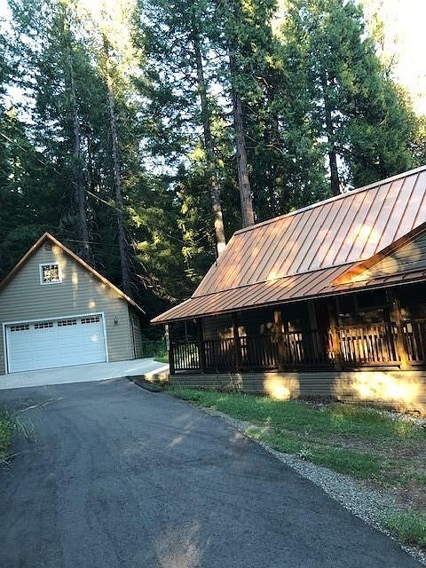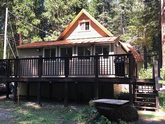 Here's a great quiet retreat in the Sierra Nevada Mountains. Recently remodeled,this cabin near Strawberry Valley, just 4 miles from Sly Creek and Lost Creek Reservoirs is nestled among the trees and has year-round access from the county plowed road. The 24'x24' garage with a loft was built in 2015, along with a woodshed, outhouse and paver patio, with a freestanding fireplace. Backyard is landscaped with a beautiful lawn on automatic sprinklers. Driveway is paved with a level RV parking area. A Cal Fire approved 2500 gallon water storage tank with a fire hydrant was also added. The kitchen has stainless steel appliances and solid surface composite countertops. Modern laminate flooring was also updated throughout the home. This home stays warm and cozy thanks to dual pane windows, propane furnace and electric baseboard heaters. The outdoor living area, decks and patio make this a retreat you won't forget. Electric panel is wired for a backup generator. Price reduced to sell
