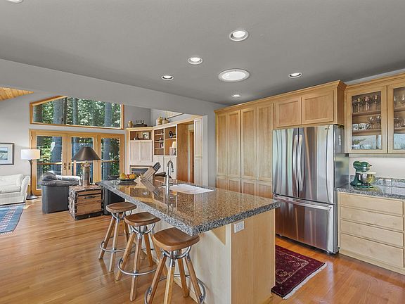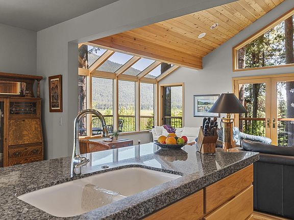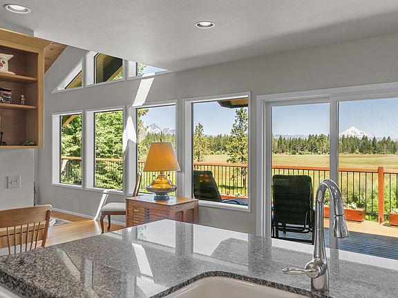 One of Black Butte Ranches premier lot locations. Situated amongst large Grand Fir trees, this home provides views of Three Fingered Jack, Mt. Jefferson and Black Butte. Enjoy complete privacy with common area space to the East, BBR Meadow to the North, open space to the West and just under 2000 square feet of decking to take it all in. This home was remodeled in 1997 by Paul Miller, and boasts, vaulted cedar ceilings, red oak hardwood floors, solid granite countertops in the kitchen and much more. All three bedrooms have their own ensuite. Main level primary bedroom has large pane windows with views of Black Butte and Captain Jack's natural spring creek. Kitchen features stainless steel appliances and beautiful larch wood cabinets. Downstairs has large bonus room/office area and your own lap swimming pool. Deck on the second floor provides shaded views for the warms Summer days. This home has been meticulously maintained over the years and is ready for it next owner.