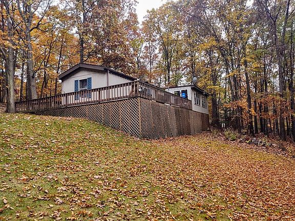 Perfect location if you love the Lake! Minutes from Seven Points Recreational facility at Lake Raystown. Short distance to the Allegrippis Bike and Hike Trail System. Borders Federal ground across Baker's Hollow Road. Serene setting on 2 acres. Two bedroom single wide home with large deck, good parking and outbuildings.