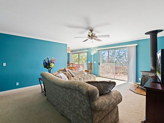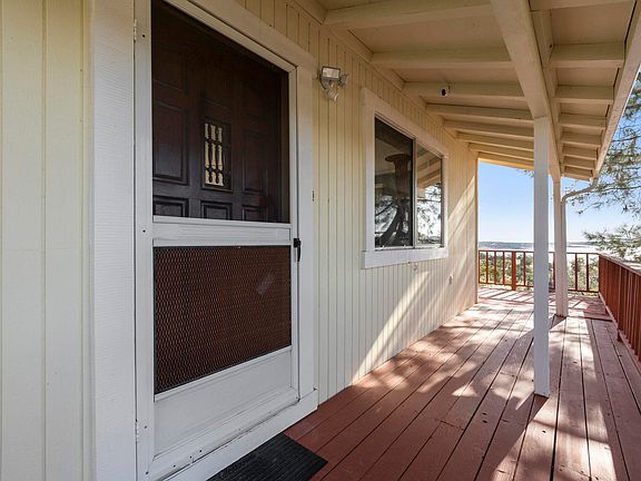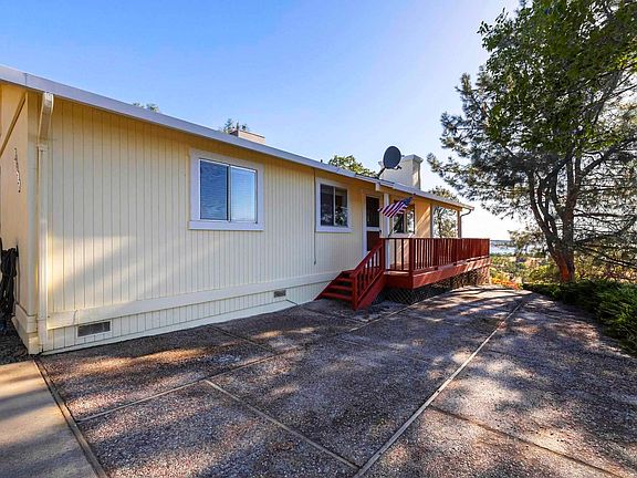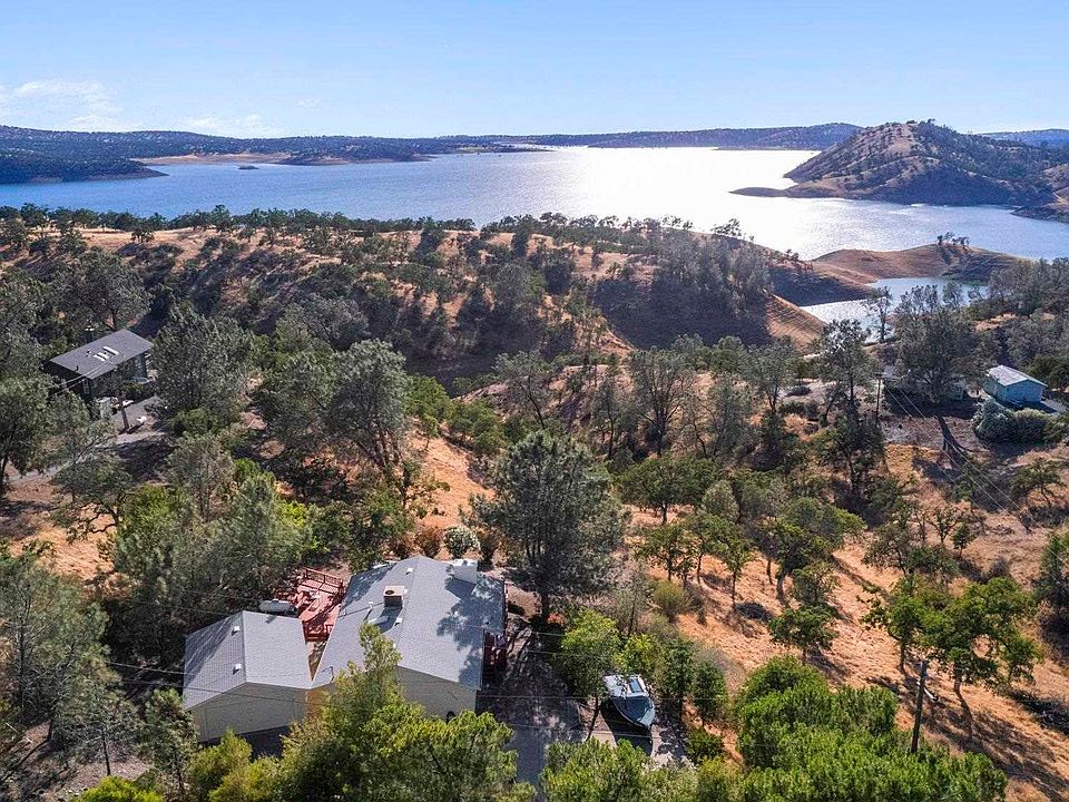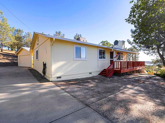 The Lake at your feet! Front row seats to beautiful -sunsets from this charming and comfortable home. 1176 Sq Ft 2 bedrooms, 2 bath and 2 car garage on 1.8 Acres. Home is move in ready, very well maintained and has a new roof! Open floor plan with lakeviews from living, dining and kitchen. Bedrooms and laundry are roomy. Central Heat and Air plus a cozy wood stove. Level, concrete circle drive way. Located in quiet rural community surrounded by large lakes for fishing and water sports, charming gold mining towns and the high Sierras with Yosemite National Park.