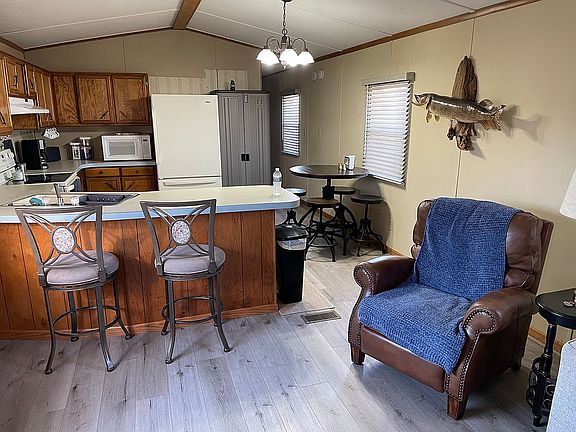Recently renovated home near the Missouri River in New Evarts Resort. Upgrades include refinished living room, bathroom, and flooring. Fully furnished including washer and dryer. Annual lot rent of $1,250 covers water and sewer.