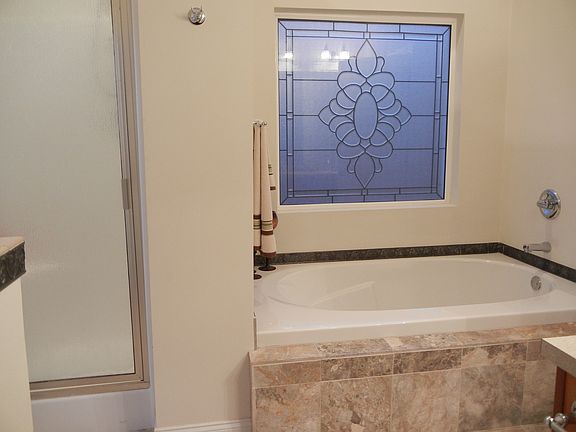 - Separate Shower, Laminate Counters, Soaking Tub, Tub/Shower Combo, Smooth Ceilings, 9 Feet +, Separate Vanities