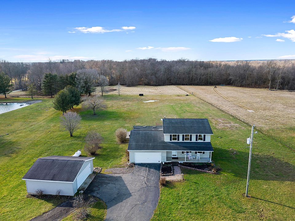 Beautiful, rolling countryside surrounds this lovely and well-maintained home. One owner. Updates throughout include opening the dining, kitchen, and main living room for open concept living with great views across the entire back of the house. You'll also enjoy private views from the screened porch. The country road is nice and quiet as it's only regularly used by you and a few neighbors. Two car attached AND detached garages with paved drive; you can bring your hobbies and/or hobby cars home on a continuous hard surface. Custom kitchen with beautiful detailing and in-cabinet accent lighting. Den could easily serve as an office. Home feels light and spacious; w/neutral decor and immaculate care it's ready for you to make your own. Schedule a showing today!!!