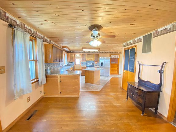 Charming country home with loads of curb appeal on 1 acre of land. Sprawling covered front porch extending to both sides of home for relaxing. Open concept great room and kitchen. Lots of cabinets and counter space for cooking. Extra-large pantry. Kitchen appliances included and washer and dryer. Main floor master with en-suite master bath. Upstairs has an additional 3 large bedrooms and sitting area. Hardwoods floors. Newer replacement windows upstairs. Full basement. Detached 4 car garage with 15x23 workshop attached. Enough space to create your own mini farm. NEW ROOF AND NEW GUTTERS just placed on!