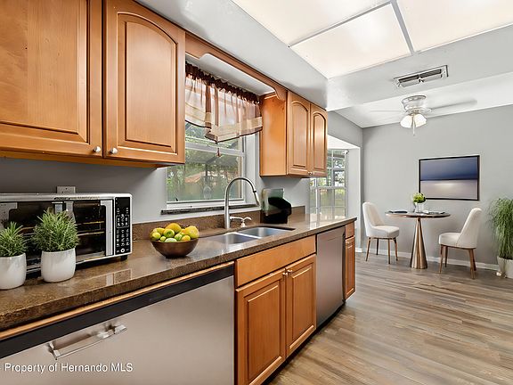 BACK ON THE MARKET PASSED INSPECTION, BUYER HOME DID NOT SELL. Welcome to your new home in Spring Hill! This 3-BEDROOM POOL home has everything you need, including a BRAND NEW ROOF. Can you imagine starting fresh in a place that's ready for you to move right in? Inside, you'll find FRESHLY PAINTED walls and newer LUXURY VINYL PLANK flooring that add a modern touch to every room. The sought-after floor plan features a spacious living and dining room with sliders that open to a large lanai. Imagine hosting gatherings or simply relaxing in this inviting space. The recently RENOVATED KITCHEN boasts newer appliances, a cute dinette space, and a large pantry. The primary bedroom is a true retreat with a huge walk-in closet and a private bathroom featuring a walk-in shower. Both guest bedrooms are roomy, and the rear guest bedroom even has sliders that lead directly to the lanai—perfect for guests who love a bit of outdoor living. With the AC system replaced in 2018 and a brand new roof you can enjoy peace of mind. This centrally located home is perfect for creating new memories. Spring Hill offers plenty of parks, shops, and restaurants to enjoy, and it's only 45 minutes away from Tampa, where you can experience vibrant cultural scenes, world-class dining, and stunning waterfront views. Ready to make this dream home yours? Come see it today and fall in love with your new home in Spring Hill!