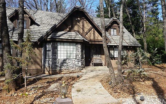 Elegant tudor-style home located in desirable neighborhood in the lower pines. Home features 3 bedrooms, 2.5 baths, large open and bright kitchen with eating area and breakfast bar, tile counter tops, tons of cupboards and storage space, double cornered kitchen sink with bay window that overlooks the natural landscaped front yard. Amenities also include, formal dining room, spacious family room with wood burning stove, glass doors that opens to a tranquil backyard with decking and your own private picnic area. Oversized master suite with his and her walk-in closets, master bath has duel sinks with tiled counter tops and separate tiled tub and shower on main level. Upper-level has bonus room with wet bar and refrigerator that separates the two additional bedrooms, full bath with tile flooring and counter tops. Low maintenance landscaping, double car garage and tile roofing. Wonderful home and gorgeous setting. Great location and convenient to everything.