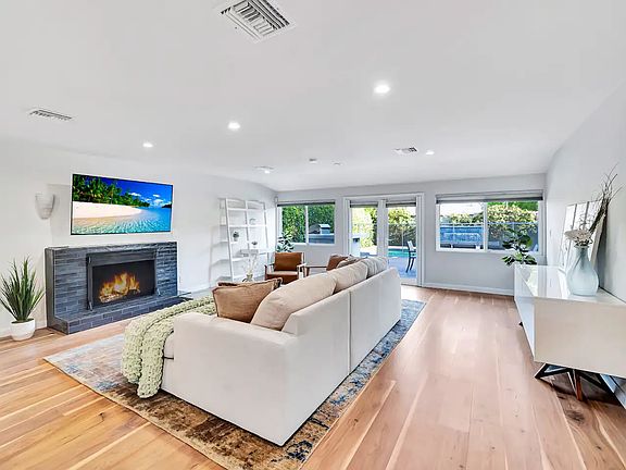 Rent our breathtaking 3-bedroom house, thoughtfully designed to blend indoor and outdoor living seamlessly. The airy, open-concept layout connects the kitchen, dining area, and living room, flooding the space with natural light thanks to numerous skylights. In the master bedroom, you'll find a luxurious king-sized bed, a smart TV, and a sophisticated ensuite bathroom. The additional two bedrooms are furnished with queen-sized beds, providing a cozy haven for your family and friends. Outside, prepare to be captivated by a stunning new deck featuring a shimmering pool and a built-in spa. The outdoor kitchen has a barbecue, sink, and mini fridge, making it an ideal spot for outdoor dining. The dining area has electric awnings to keep you cool and shaded during sunny days. As dusk falls, gather around the contemporary concrete fire pit for a delightful evening under the stars. The nearby outdoor seating area invites relaxation and enjoyment of the serene surroundings. For a bit of friendly competition, head to the garage where a brand-new pool table awaits. Add to that the beauty of your surroundings with lush fruit trees that create a picturesque setting for your stay. Whether you're in search of peace or adventure, our lovely 3-bedroom house is equipped to help you create unforgettable memories. Come see it for yourself! This charming property is available for month-to-month leasing with the possibility of transitioning to a long-term agreement. It's fully furnished and includes three spacious bedrooms, along with a sofa in the living room that can be converted into a twin bed accommodating up to 8 guests. The game room features a large TV and pool table, while the outdoor space boasts a pool, spa, fire pit, BBQ, and ample seating. Rent includes gas, electricity, and water, while pool and spa heating services can be arranged for an additional fee. Garden and pool maintenance will also be managed by the owner.