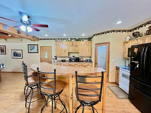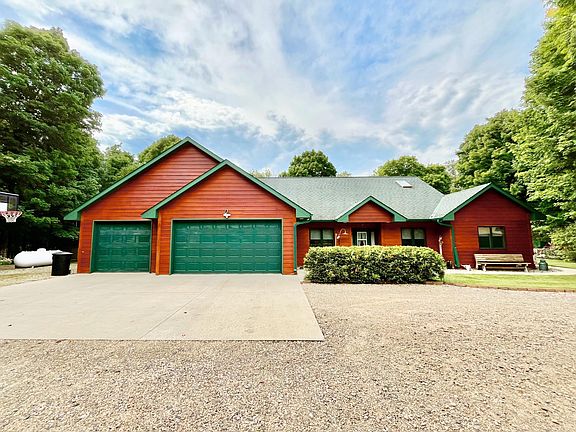 Welcome home to this beautifully maintained 3-bedroom, 3-bathroom rambler with 240 feet of frontage on the scenic North Ten Mile Lake. This charming one-level home offers an open-concept living, dining, and kitchen area, complete with a center island and a lakeside patio—perfect for entertaining or unwinding with a cool drink in the summer. The primary suite is a private retreat, featuring its own bathroom and a spacious walk-in closet. A versatile office provides the flexibility to work from home and also functions as a conveniently located laundry room. Enjoy year-round comfort with in-floor heating, powered by either propane or an exterior wood boiler, along with a propane fireplace and a mini-split heat pump for additional climate control. Step outside to your own private boat launch and a charming lakeside cabin, ideal as a bunkhouse for guests. With over 2 acres of land, the property offers endless opportunities for outdoor recreation. Additional features include an oversized, attached three-stall heated garage, plus a detached heated garage/workshop with nearly 900 square feet of space and an attached carport for extra parking or storage. Homes like this are a rare find—schedule your showing today and make this lakeside retreat your own!
