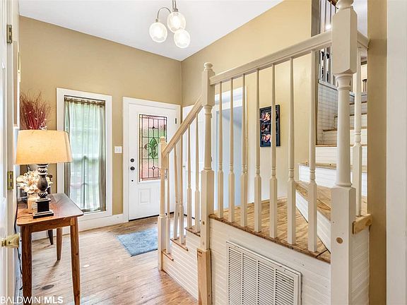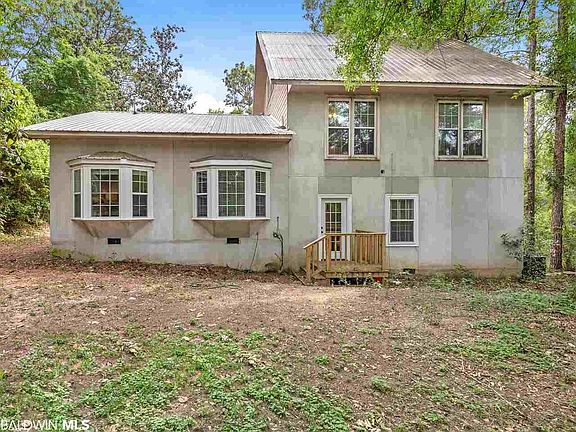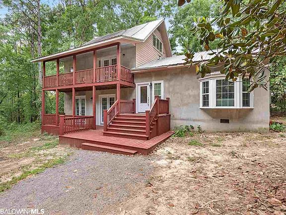 The perfect combination of convenient location and secluded privacy! This 3 bedroom 2 bath home sits on a 2.6 acre lot with plenty of trees for privacy. All bedrooms have wood flooring and neutral paint colors. New french doors in the master bedroom walk out to a covered patio, while the second and third bedrooms have window seats that would are perfect reading nooks. Third bedroom could easily be split to have a fourth bedroom/office space. New windows throughout bring the serene surroundings into the home. Kitchen upgrades galore: bamboo floors, under cabinet lighting, refrigerator and dishwasher are less than a year old, and the double ovens and gas range were installed in 2015. Large living room is perfect for entertaining. Outside you will find a new large covered porch off the kitchen, perfect for morning coffee or outdoor dining. The attic space is unfinished, but is large and could make a perfect bonus space or additional living space. Water heater and inside air handler are >1 year old. Convenient access to the Eastern Shore, Mobile, and Pensacola.