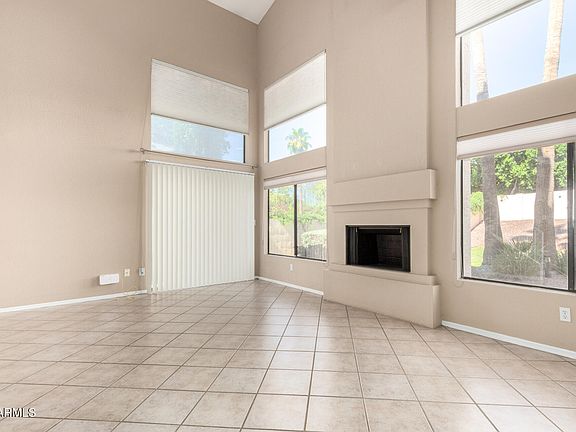 Epoxy floor in garageWood burning fireplaceGrass and desert landscapingViews of backyardHigh windowsTwo-tone paintGranite countertops