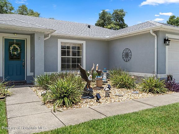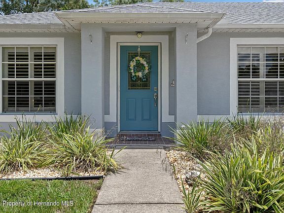 Looking for a bright and clean 3-bedroom pool home? Your search ends here! As you enter, you'll immediately notice the spacious and well-lit living room with luxury vinyl and kitchen area. The kitchen offers ample space for a table or island and a countertop perfect for several barstools. To the left, you'll find the primary bedroom, generously sized at 12x18, featuring a recently updated bathroom and a walk-in closet. On the right side of the living room are two additional bedrooms, a bathroom, a laundry room, and the entrance to the garage. Through the sliding doors off the living room, you'll discover a spacious Lanai with sliding vinyl windows, overlooking the pool area, new patio, and 12x8 shed. The kitchen boasts newly updated soft-close wood cabinets, LG Stainless Steel appliances, and is complemented by elegant plantation shutters throughout the home together with a whole home surge protector. The above-ground pool and deck, installed in 2022, add to the home's charm, along with a new roof from the same year. Additional updates include a drain field in 2021 and an A/C unit in 2018, a resealed roof on the Lanai in 2023, and brand new Plexiglass windows in the Lanai installed 08/2024. Situated in a prime location with easy access to the Suncoast Expressway, this property is truly the Gem of Spring Hill. Call today to see it for yourself!