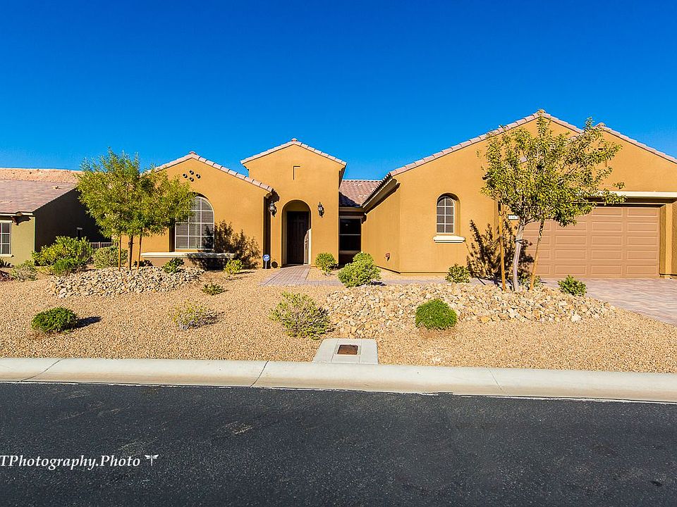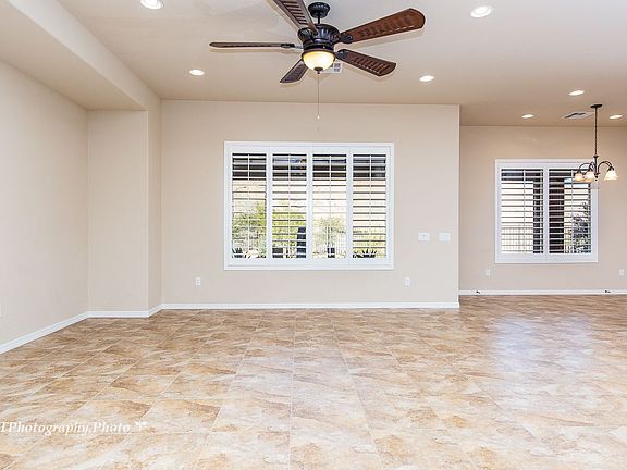 Don't miss out on seeing this Joshua model with so many desirable upgrades inside and out with views of golf course and the mesa. Beautifully designed 3 bed 3 1/2 bath home has tile throughout even in the bedrooms. Tray ceiling in the entry, bay window in the master bedroom, shutters on the windows with solar screens, double roll out shelves in the kitchen cabinets, fans in living room and 2 master bedrooms, upgraded pavers in the front and in back extended patio area, 4 ft. extended garage and keyless entry. Located in Sun City Prominence Pt. subdivision on over a quarter of an acre lot with a view of the 15th hole of Conestoga Golf Course. As a resident of Sun City you enjoy reduced rate at the golf course, many amenities at the 30,000 sq. ft. Pioneer recreation center such as indoor and outdoor pools, tennis, pickle ball, bocce ball are just some of the activities available to residents. Come see for yourself life does not get better than this!