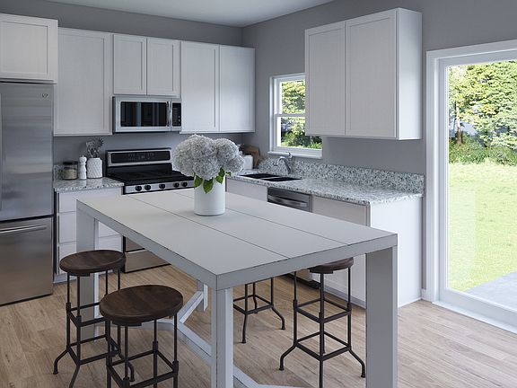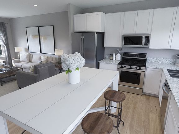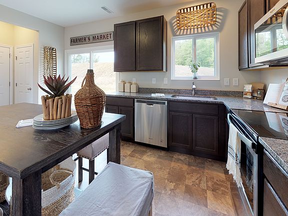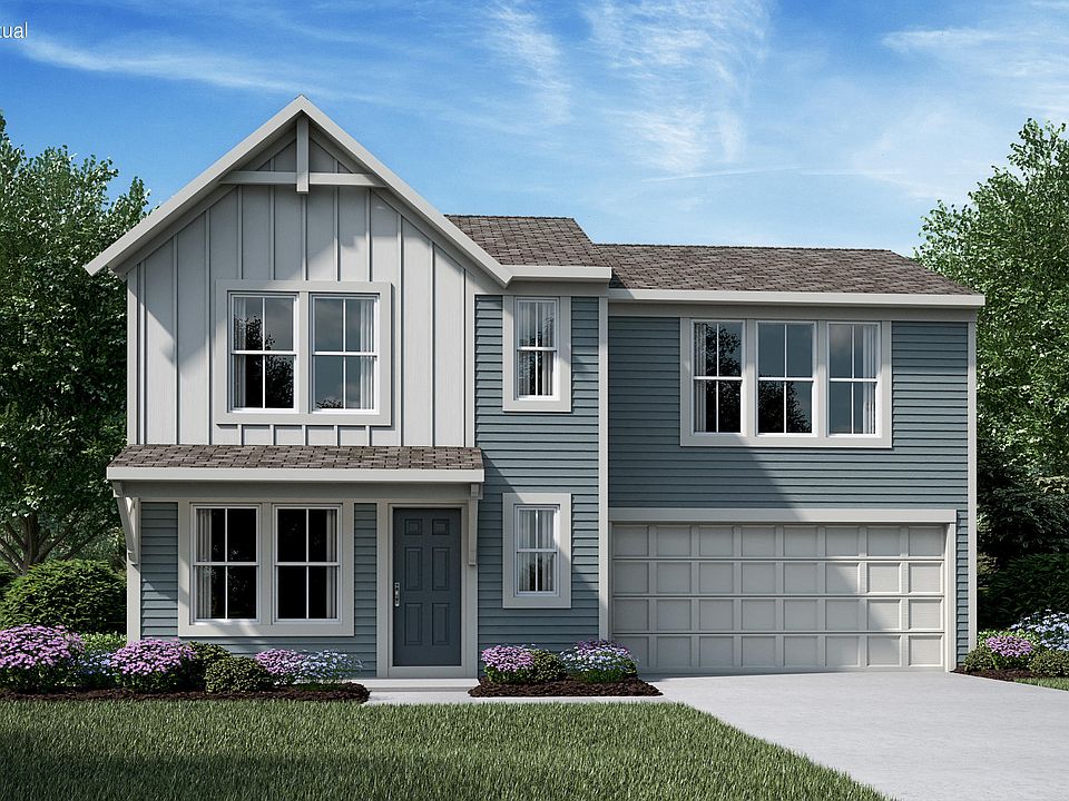 Harper Modern Farmhouse by Fischer Homes in the beautiful Bogard Woods community featuring an island kitchen with upgraded oak cabinetry, granite countertops, stainless steel appliances and pantry. Walkout Kitchen/Dining area open to family room. Primary bdrm with en suite, vanity, tub with shower and WIC. Addt'l 2 bedrooms, loft and hall bath. 2 car garage.
