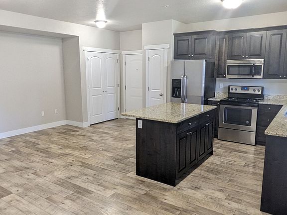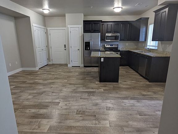 This stylish apartment in Layton offers modern finishes, a gourmet kitchen, and a private patio, perfect for relaxing or entertaining.