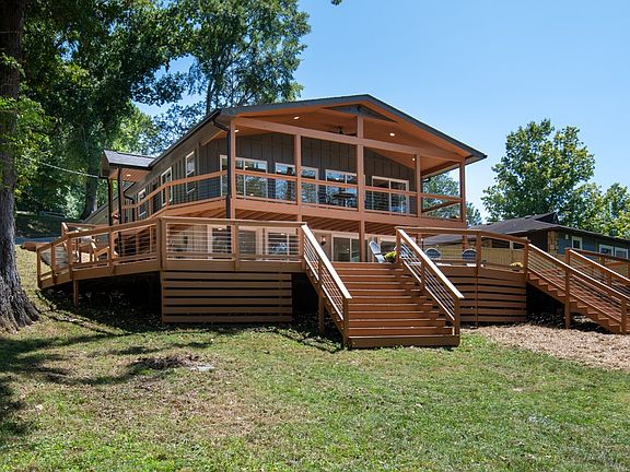 Stunning lake views and private dock set the stage for this beautifully remodeled lakeside oasis on Old Hickory. This two-story 1970’s build has been updated for modern living and boasts a great room perfect for entertaining w even greater panoramic views w a covered deck as part of its open living/kitchen/dining. New kitchen w shaker cabs, quartz counters, tile splash, pro appliances and pantry. Primary suite w private bath w tile shower, tub, dbl vanity and large closet. Secondary bed on main level is en suite w hall bath w new tile shower and dbl vanity. Lower level includes 2 beds, hall bath and bonus room w walk out to oversized lower deck w hot tub. Upgraded finishes like LED recessed lighting, wide-plank hardwoods, new fixtures, fresh paint and more. Privacy fence, shed, concrete drive w additional parking at street level. Dock has electric lift and sits at end of Hidden Cove offering deep water and less lake traffic. Sitting outside city limits, this property is STR eligible.