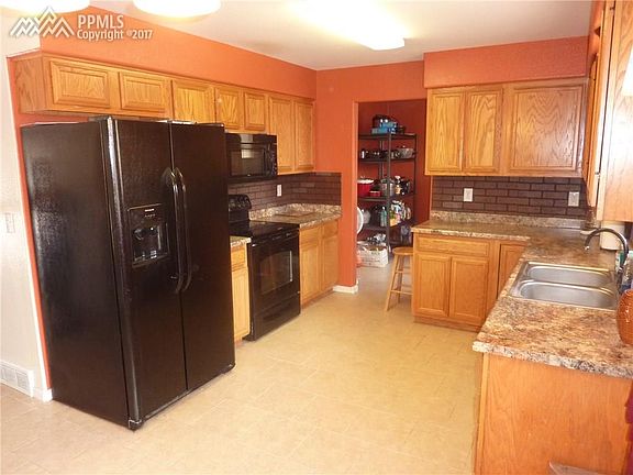 Fantastic home near major thoroughfares and military bases! Perfect family home in a quiet neighborhood near schools and parks. New roof to be put on! All black appliances and large walk-in pantry. Two large separate living areas, with a walk-out from the lower level to the large, fenced in back yard. Large master with a 5 piece adjoining bath! Pikes Peak views from upstairs! Central AC! Garden level finished basement. Maintenance free front yard. This is a must see home!