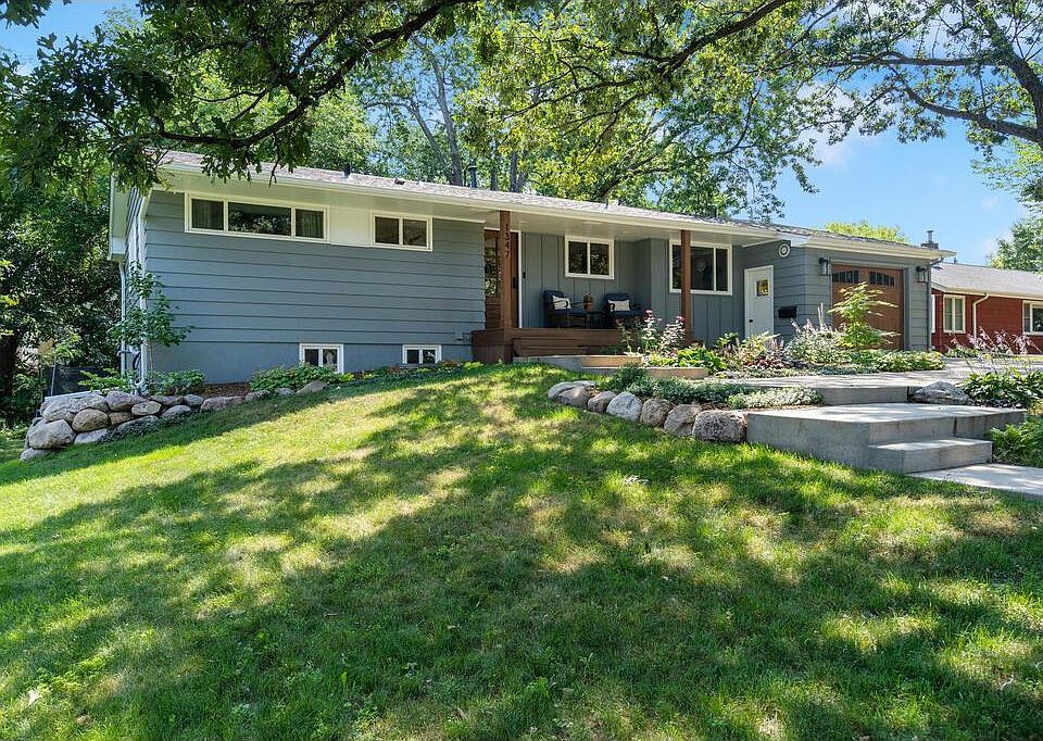 MID CENTURY BEAUTY, ON THIS OVERSIZED LOT, ON CUL-DE-SAC IN ST LOUIS PARK. MANY MODERN FEATURES. ORIGINAL HDWD FLS, 9' CEILINGS, LOTS OF WINDOWS APPROX 80% REPLACED, MANY BEAUTIFUL OAK TREES. PRIMARY BEDROOM FEATURES LARGE WALK-IN CLOSET AND JULIET BALCONY. LOWER LEVEL WALKOUT WITH LARGE CUSTOM BAR BUILT IN. NEW SIDING - on front, NEW ROOF, NEW DRIVEWAY, UPDATED MAIN FLOOR BATH & REFRESHED LL BATH. LOVELY, LARGE PORCH OVERLOOKS LARGE BACKYARD & FLANKS SUNKEN LIVING ROOM. EASY ACCESS TO 394, PARKS, RESTAURANTS & SHOPPES AT WEST END.