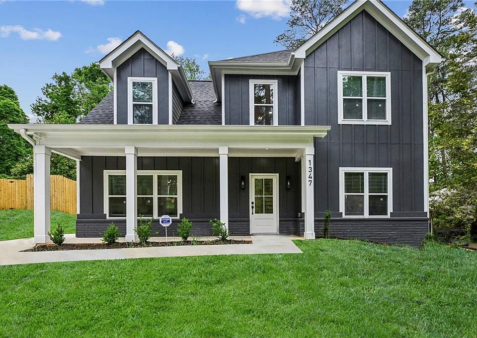 Brand new, modern farmhouse-style residence at 1347 Midlawn Drive in Decatur! This beautiful home offers 4 bedrooms and 2.5 bathrooms within its spacious 2024 sq ft of living space. Built in 2024 by Adaco Construction, this single-family home showcases an open concept design, a stylish kitchen with solid surface counters, crisp white cabinets, and a convenient kitchen island. Enjoy the ease of a master suite on the main level featuring a double vanity and a separate tub and shower. A convenient half bath is also located on the main floor. Upstairs, you'll discover three additional bedrooms and one full bathroom. This home also boasts a cozy family room fireplace, a separate dining room perfect for entertaining, and a welcoming front porch. Step outside and appreciate the large, fenced-in backyard, offering plenty of space for outdoor activities! Conveniently located near both Decatur and Avondale Estates, with easy access to highways and Atlanta, don't miss this incredible opportunity for new construction in a highly desirable location!