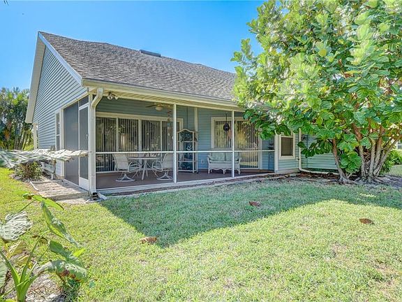 Look for the eagles, egrets, osprey & otters, in your cool north facing, backyard deep water canal from the larger 10'x20' screened in lanai. Single level living, 2 bedrooms & a den/family room, inviting courtyard entry from the detached 2 car garage. Side/front door brings you into the living room, front entry is into the front den/family room. Extra large master suite (15'x16'), walk in closet, separate soaking tub & walk in shower. Older appliances but all in working order (AC replaced in 2017, dishwasher in 2020), this home has only been a seasonal residence for the past 22 years. Sidewalks surround the entire community, where the villas enjoy a private pool & 2 tennis courts (on the south side of the community). Quaint fishing pier in the center lake for the entire community.