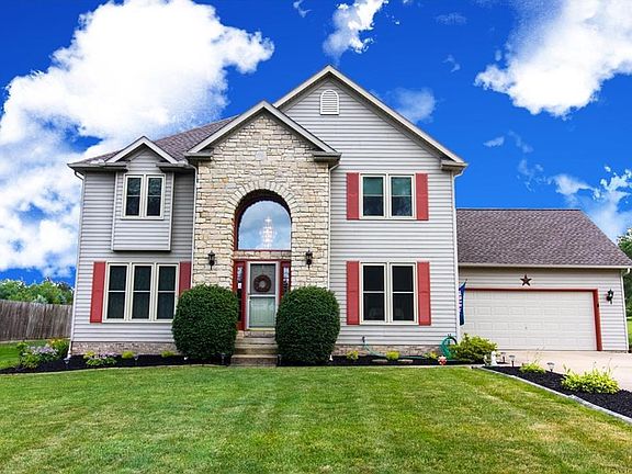 Enter center hall colonial situated on over an acre with beautiful private view of backyard. 4 bedrooms, 2.5 bath. Spacious master bedroom, master bath with soaking tub, shower and large walk in closet. Full unfinished basement is a blank canvas awaiting your touch. Large open kitchen, breakfast bar capable of seating minimum of 6, quartz counter tops, stainless appliances (all stay) and beautiful wood laminate floor, sliding doors that lead out to the huge deck overlooking the backyard. The family room is an extension of the kitchen, wood burning fireplace with gas start. The roof was replaced in 2012 and carries a warranty, the windows new in 2014. One Year Home Warranty is included.