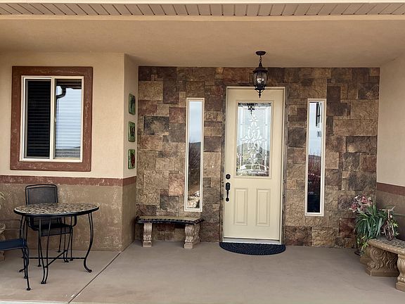 A jewel on 2.88 acres-the best of 2 worlds-elegance and rural living, backs up to BLM.Beautifully landscaped and acreage for animals,workshop.All on one level.The custom open kitchen leads to the warm spacious living room with a super efficient wood stove.The Master suite is 2 levels with the step down featuring a cozy seating area with gorgeous views.There is an amazing enclosed patio room for even more entertainment space.The home has a sound system throughout-5:1 in the master; 7:2 in the living room.There are 2 -50 gallon water heaters,reverse osmosis water,water softener and a security system.A storage shed and a shed stacked with firewood. Garage is 958 sq ft that leads to an artist's studio with tons of storage that leads to the kitchen.So many custom features must see to appreciat