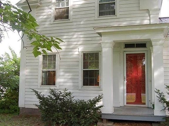 Charming home w/ original ash & pine wide board floors, beautifully remodeled spacious kitchen w/ roll out drawers plus original built-in cabinets, new 2nd full bath upstairs & 1st fl full bath remodeled 2008. Hot air heat & efficient alternative heat with wood & coal stove in dining room. Drilled well & septic both 15 yrs old, house set back from road on half acre; back porch w/ view of yard, fields and above-ground pool to enjoy all summer; 3 bedrms plus 1st fl office area, cable/internet, just move in!