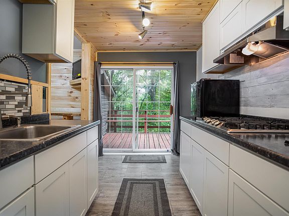 This remodeled mountain home is suitable as a year-round residence or a retreat get-away. There is plenty of space to enjoy the outdoors, and multiple heat sources (wood stove and propane stove) to stay cozy and warm inside. The home features a mini-split electric heat and AC system so you can stay cool in the summer months. The updated kitchen and the laundry facilities provide all you need for full living, with space to add appliances as desired. The home even has a skylight to let more daylight in. The vinyl siding offers a modernized appearance and maintenance-free exterior. Replacement windows provide energy efficiency. While electric service is reliable, the generator that conveys with the home can provide backup for select systems when needed. Furniture in the home may be available for sale - negotiable. Visit! You may just want to linger a while.